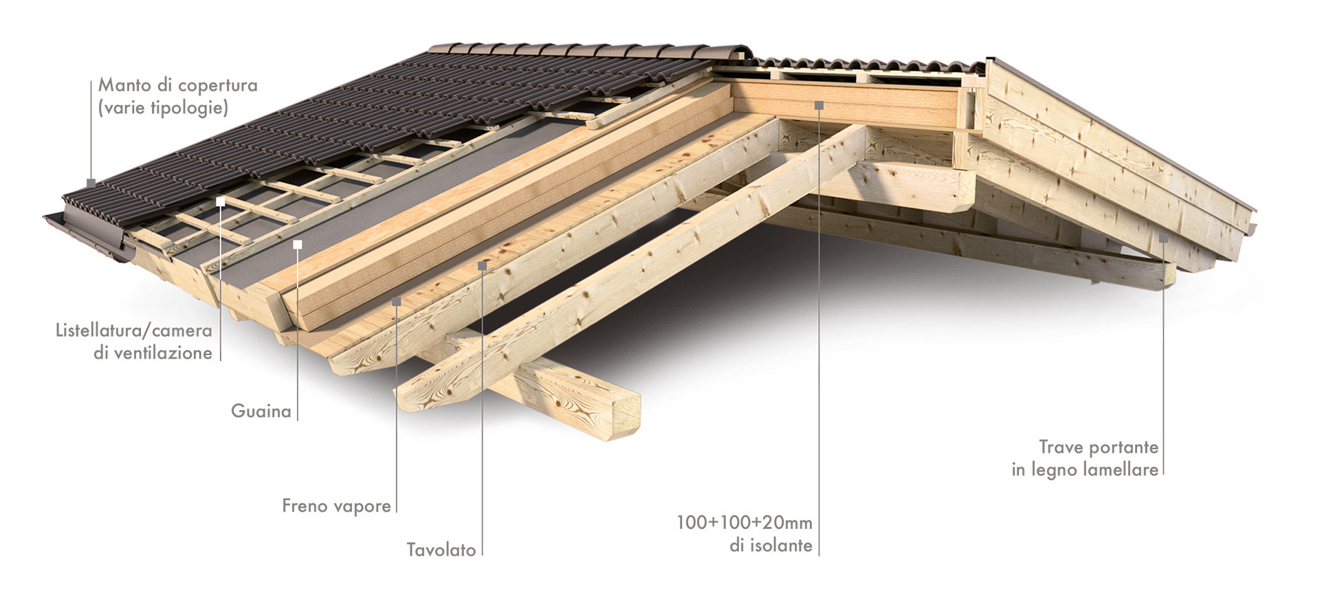 Il legno lamellare è oggi utilizzato per la costruzione di diversi tipi di strutture, tra le realizzazioni più richieste nel mercato edilizio rientrano sicuramente le coperture in legno lamellare: leggere, completamente naturali e di grande impatto dal punto divista del design e del benessere abitativo. La realizzazione di un tetto è un'operazione fondamentale, esso è la superficie della casa esposta maggiormente agli agenti interni ed esterni, per questo motivo richiede una grande attenzione ai dettagli, dalla struttura ai piccoli accorgimenti estetici.